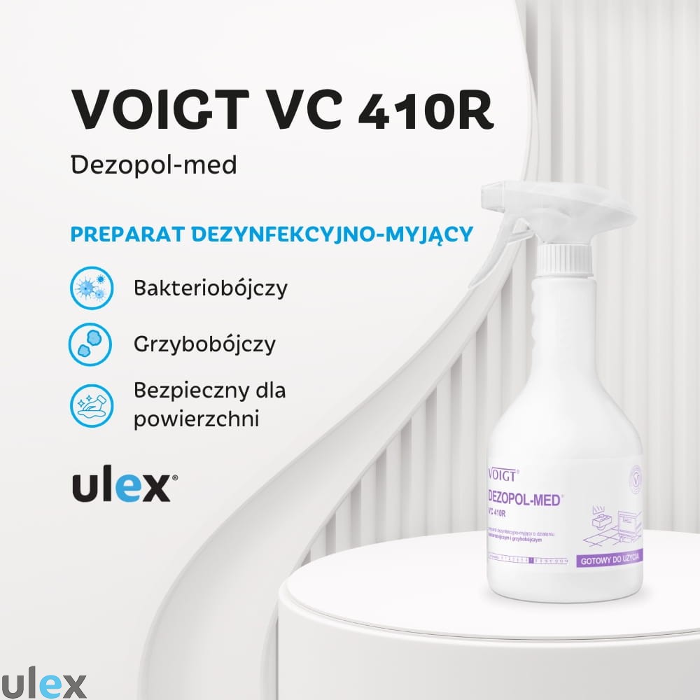 VC 410R Dezopol-Med to profesjonalny preparat w formie wygodnego sprayu, przeznaczony do szybkiej i skutecznej dezynfekcji różnorodnych powierzchni. Stworzony przez markę Voigt, specjalizującą się w chemii profesjonalnej, środek ten znajduje zastosowanie zarówno w gastronomii i przemyśle spożywczym, jak i w placówkach medycznych, instytucjach publicznych czy biurach. Dzięki formule gotowej do użycia oraz możliwości stosowania bez spłukiwania, VC 410R jest niezwykle praktyczny i wydajny.