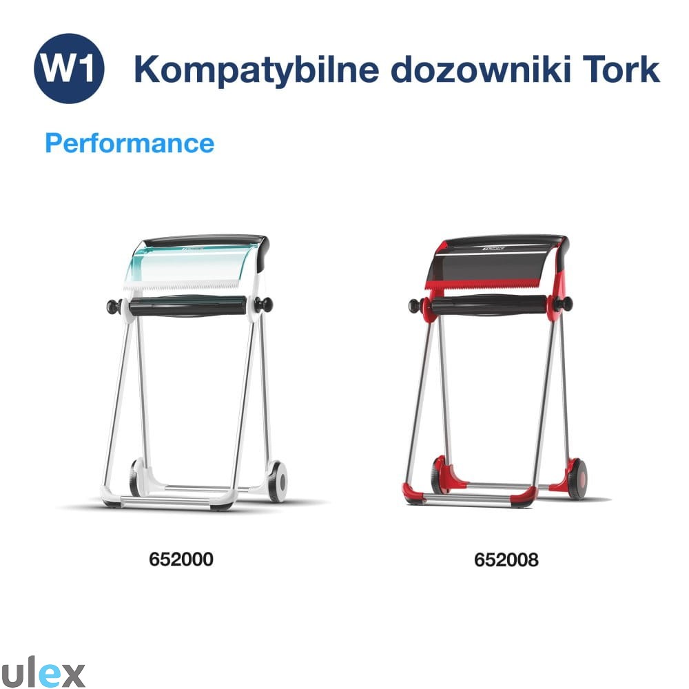 System W1 to standardowy dozownik Tork przeznaczony do czyściw w roli, zapewniający wygodne i higieniczne dozowanie papieru.