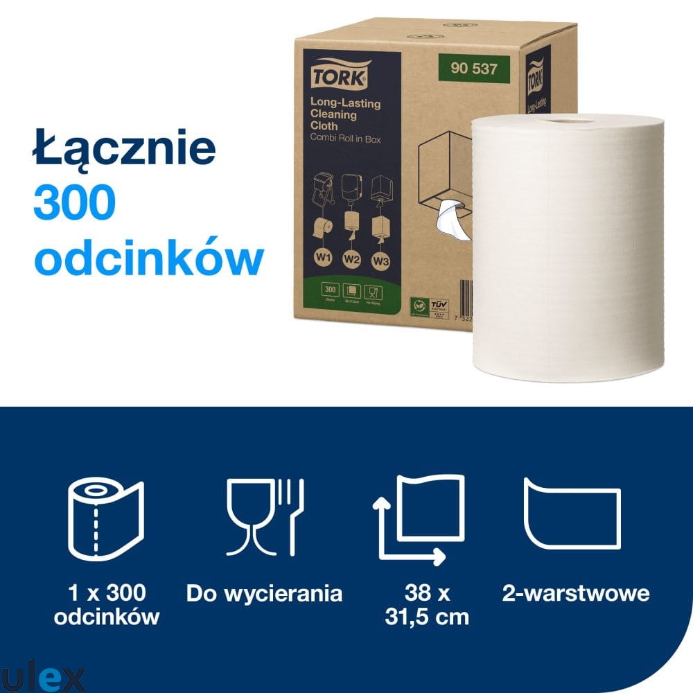 - Higieniczne dozowanie – pasuje do dozowników Tork W1, W2 i W3, które zapobiegają kontaminacji czyściwa, redukując odpady i zapewniając higieniczne użytkowanie.