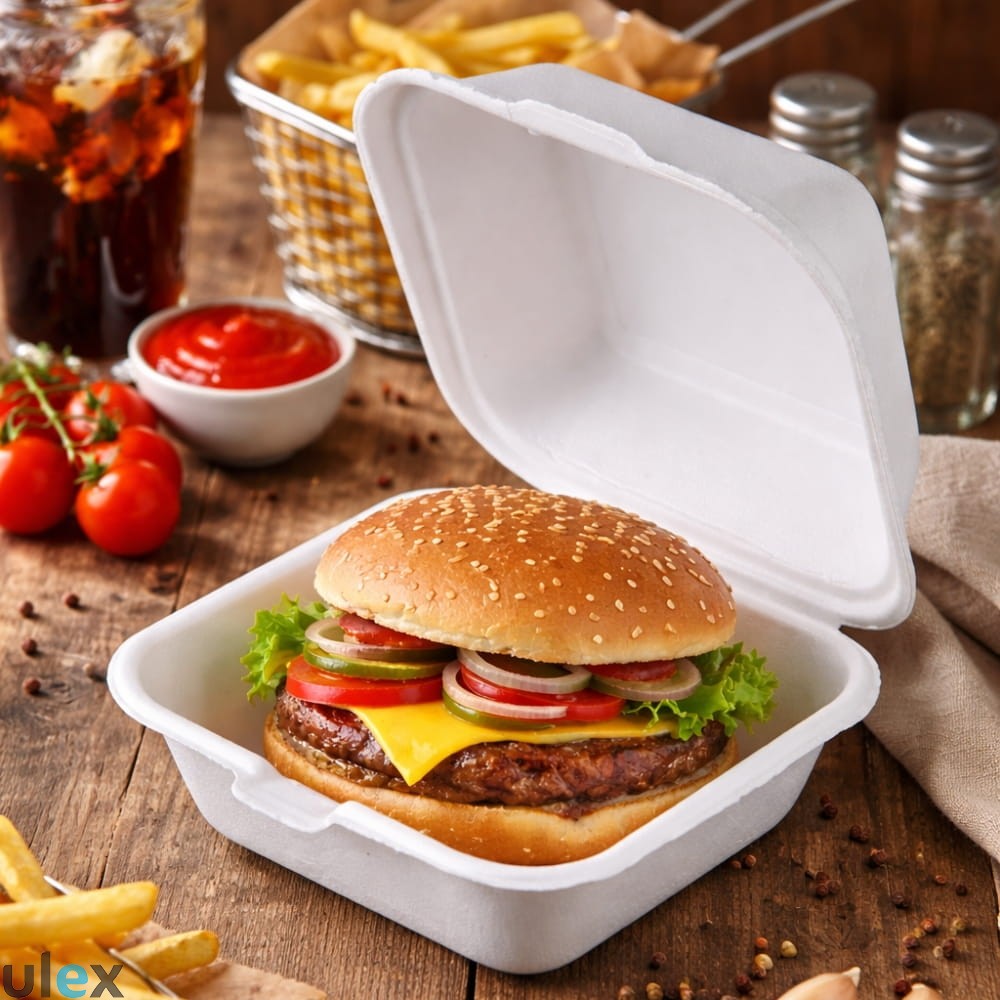 Pojemnik z włókna roślinnego jest idealny dla restauracji, food trucków, barów szybkiej obsługi oraz firm cateringowych oferujących dania na wynos. Solidna konstrukcja ułatwia transport potraw i pomaga utrzymać ich formę podczas dostawy. Burger Box może być używany zarówno do dań ciepłych, jak i zimnych, dlatego sprawdza się przy burgerach, wrapach, przekąskach oraz lunch boxach.