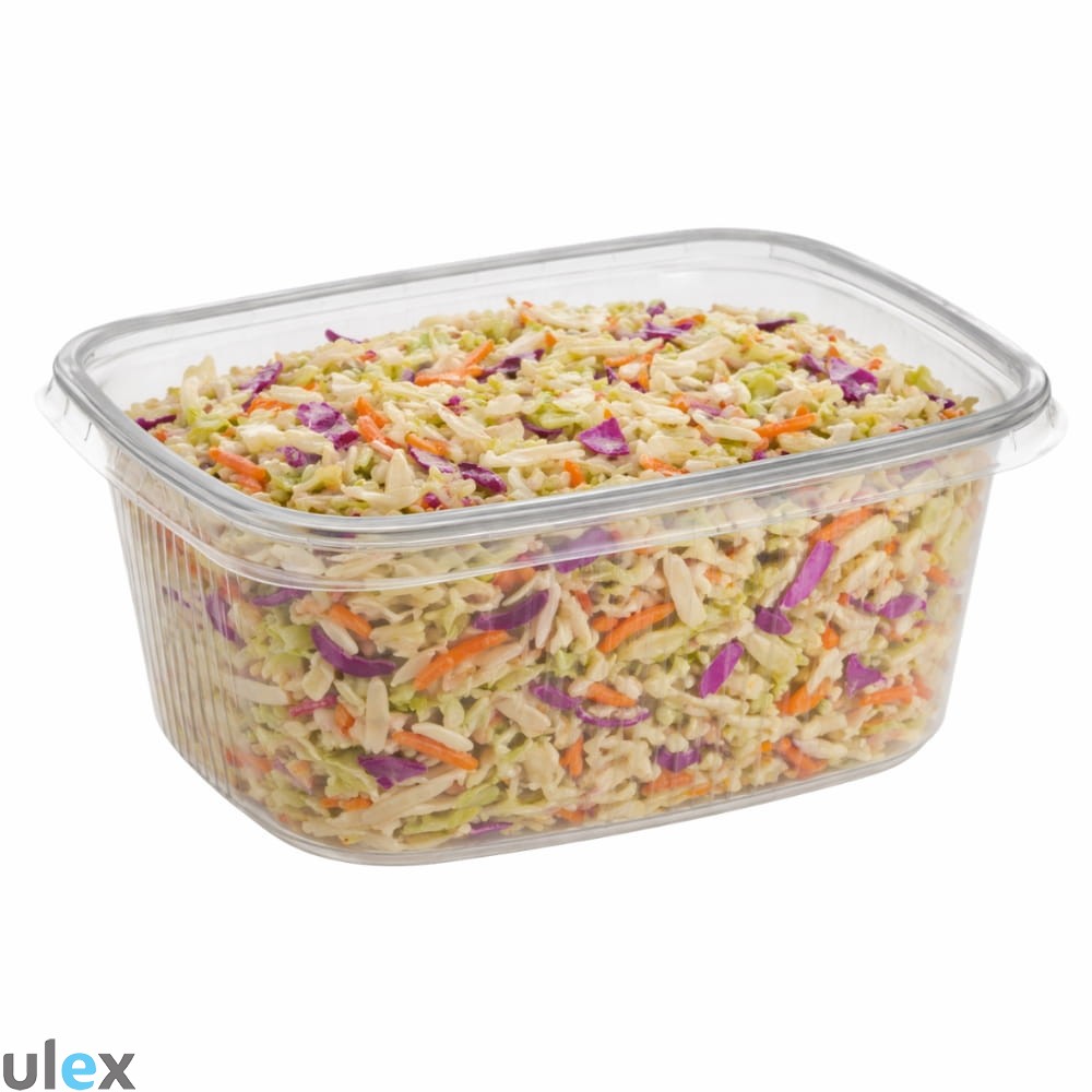 Pojemniki 250 ml są szczególnie przydatne w garmażerkach, sklepach spożywczych, delikatesach, restauracjach, cateringach dietetycznych oraz w punktach z daniami na wynos. Prostokątny kształt ułatwia układanie pojemników w ladzie chłodniczej i w torbach transportowych, a także pozwala lepiej wykorzystać miejsce na półce. To dobry wybór do porcji „dodatkowych” — np. surówki do obiadu, sosu do dania, dipu, pasty, sałatki jarzynowej czy małego deseru. Przezroczystość poprawia estetykę ekspozycji i pomaga szybko identyfikować zawartość na zapleczu, co przyspiesza kompletowanie zamówień.