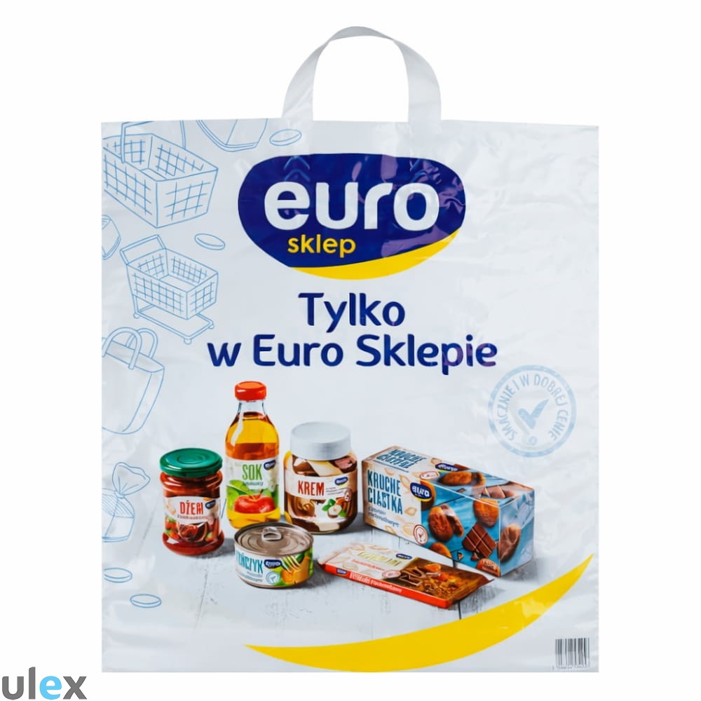 Reklamówki LDPE z logiem EURO o wymiarach 45 x 49 cm i grubości 55 μm to praktyczne torby foliowe stworzone z myślą o profesjonalnym zastosowaniu w sklepach, hurtowniach, gastronomii oraz punktach handlowych. Wyróżnia je solidność wykonania i charakterystyczne nadruki z motywem EURO, które nadają torbie estetycznego, a zarazem rozpoznawalnego wyglądu.